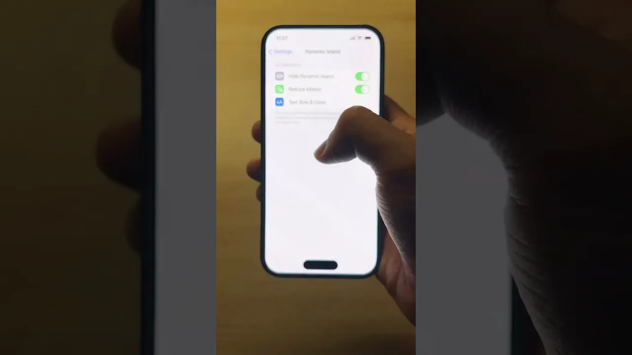 I designed the prototype upside down. You hold the phone upside down too, cover the real island at the bottom with your hand, and interact with the fake island on top. When you flip the phone, the settings UI looks normal because it was created that way from the start. I also added faint fake camera and sensor cutouts to match the real layout.