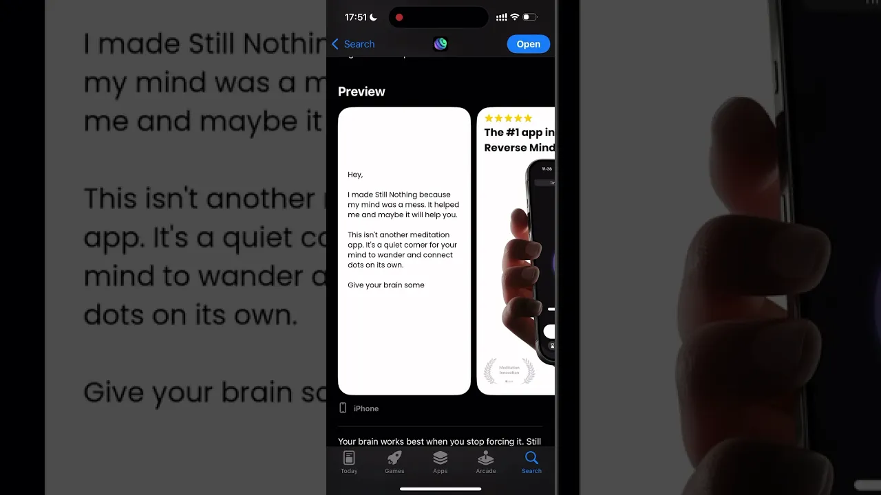 I use Still Nothing when I feel overloaded or stuck - between tasks, before planning, or after long input heavy blocks. The feedback and reviews have been positive, and lately I’m seeing the same idea pop up across social media.